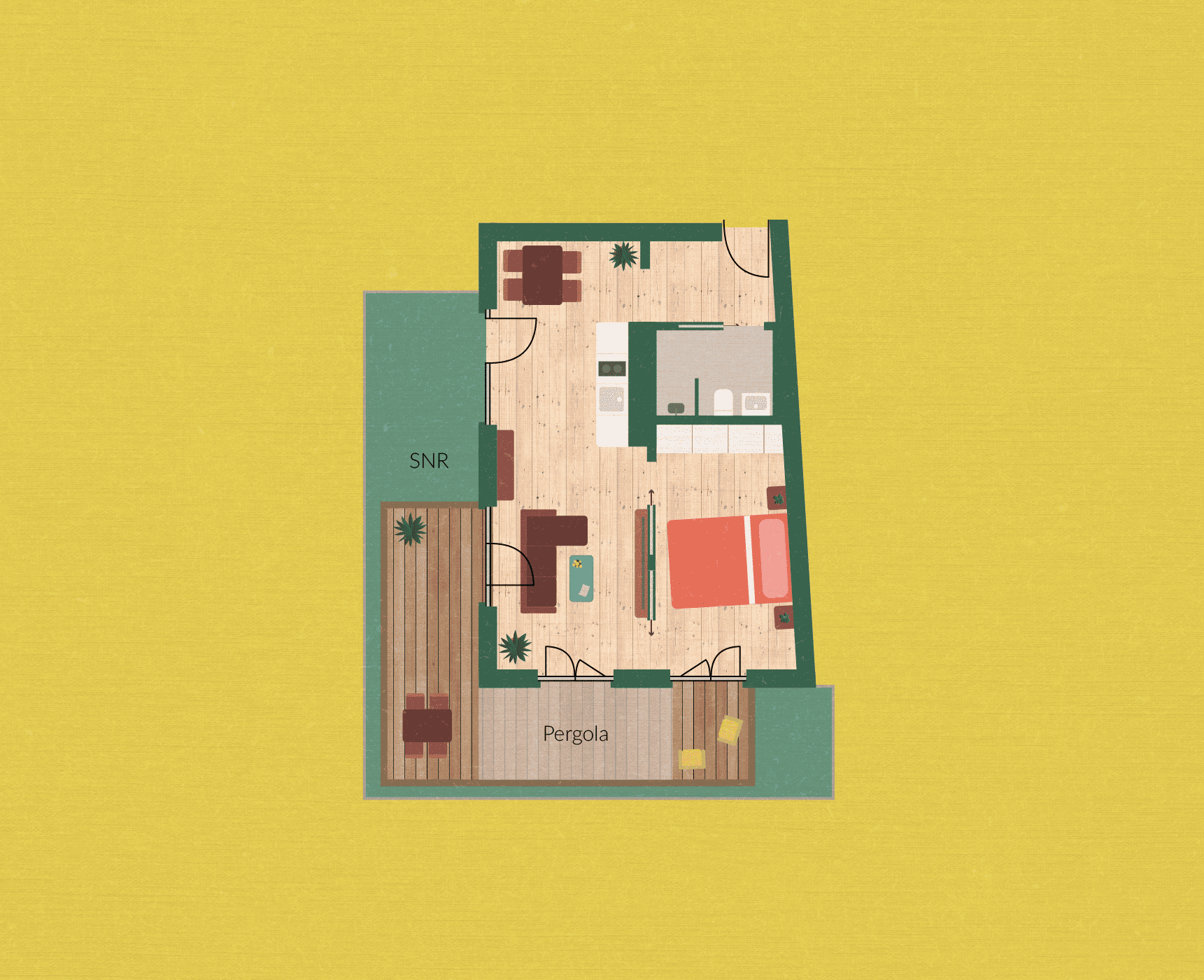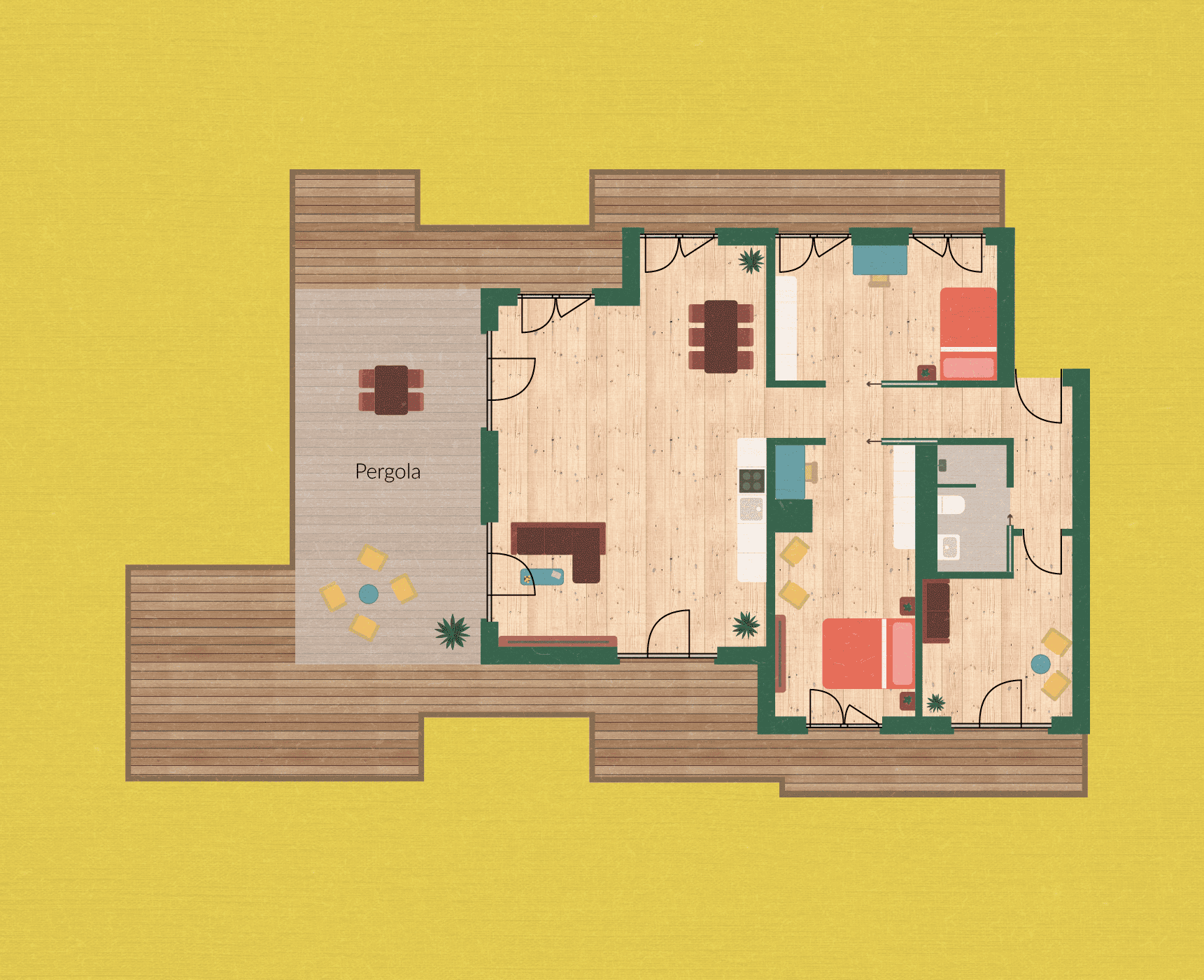 Was für ein Highlight: dene eigene Pergola und sogar Fahrradstellplätze direkt am Haus. Dazu noch ein Gartenanteil mit Terrasse und der Blick direkt in den grünen Innenhof. Da kannste die Ruhe genießen und Erholung finden.