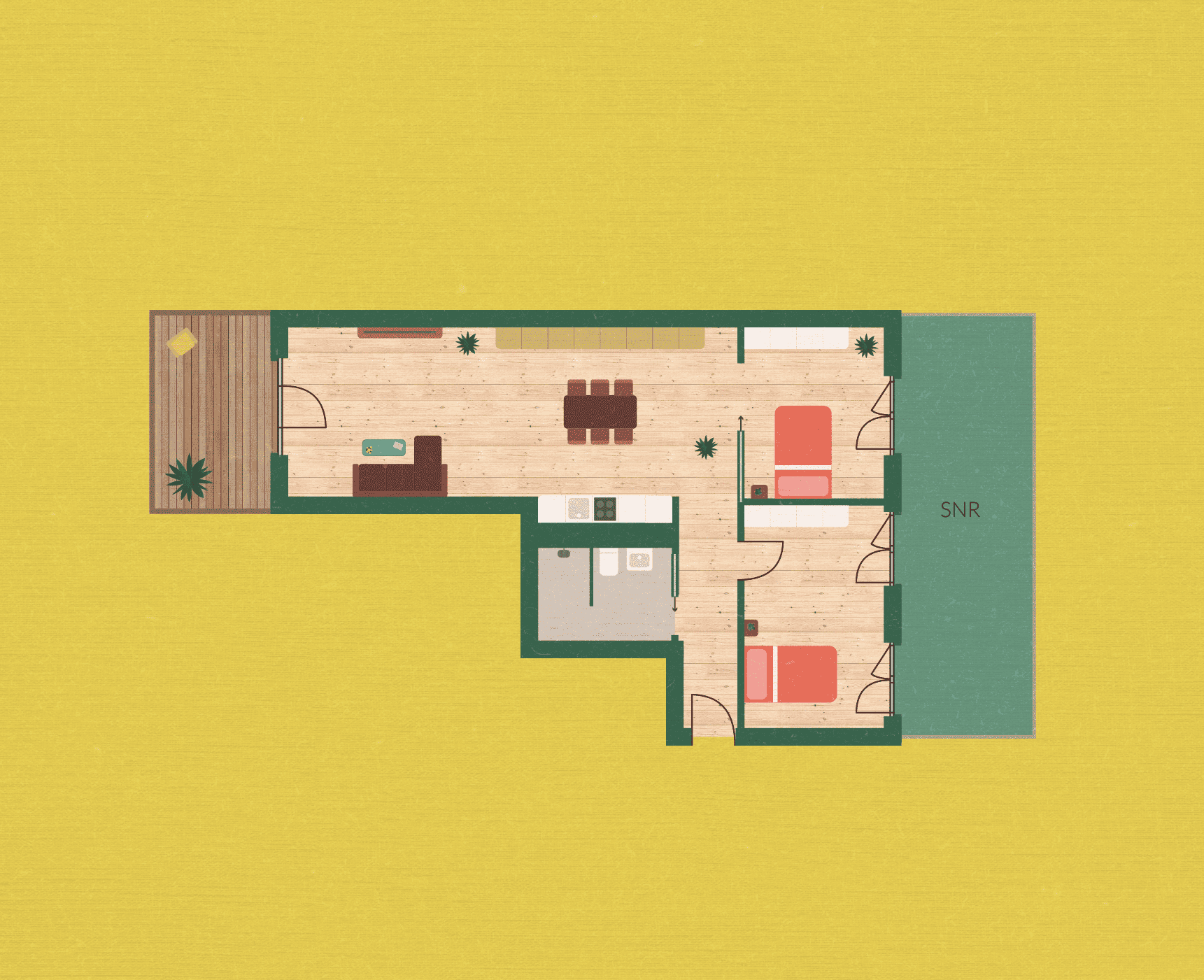 Innen wartet eine großzügige Wohn-, Koch- und Esssituation und Barrierefreiheit auf dich. Ideal vorbereitet auf jede Situation: vom schnellen Kaffee bis zum langen Abend mit Freunden.